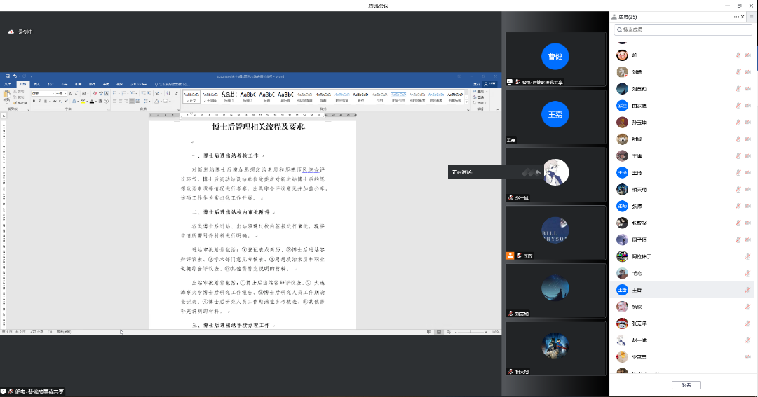 控制科学与工程流动站在站博士后2022年获博士后基金项目立项7项,占全校获立项总数近1/3。今年获立项的博士后在线上做了基金申报经验交流分享。会上,学院组织全体博士后进一步学习了流动站管理相关的规章制度,对博士后进出站的手续办理、材料准备和考核要点等工作进行了讲述及明确。