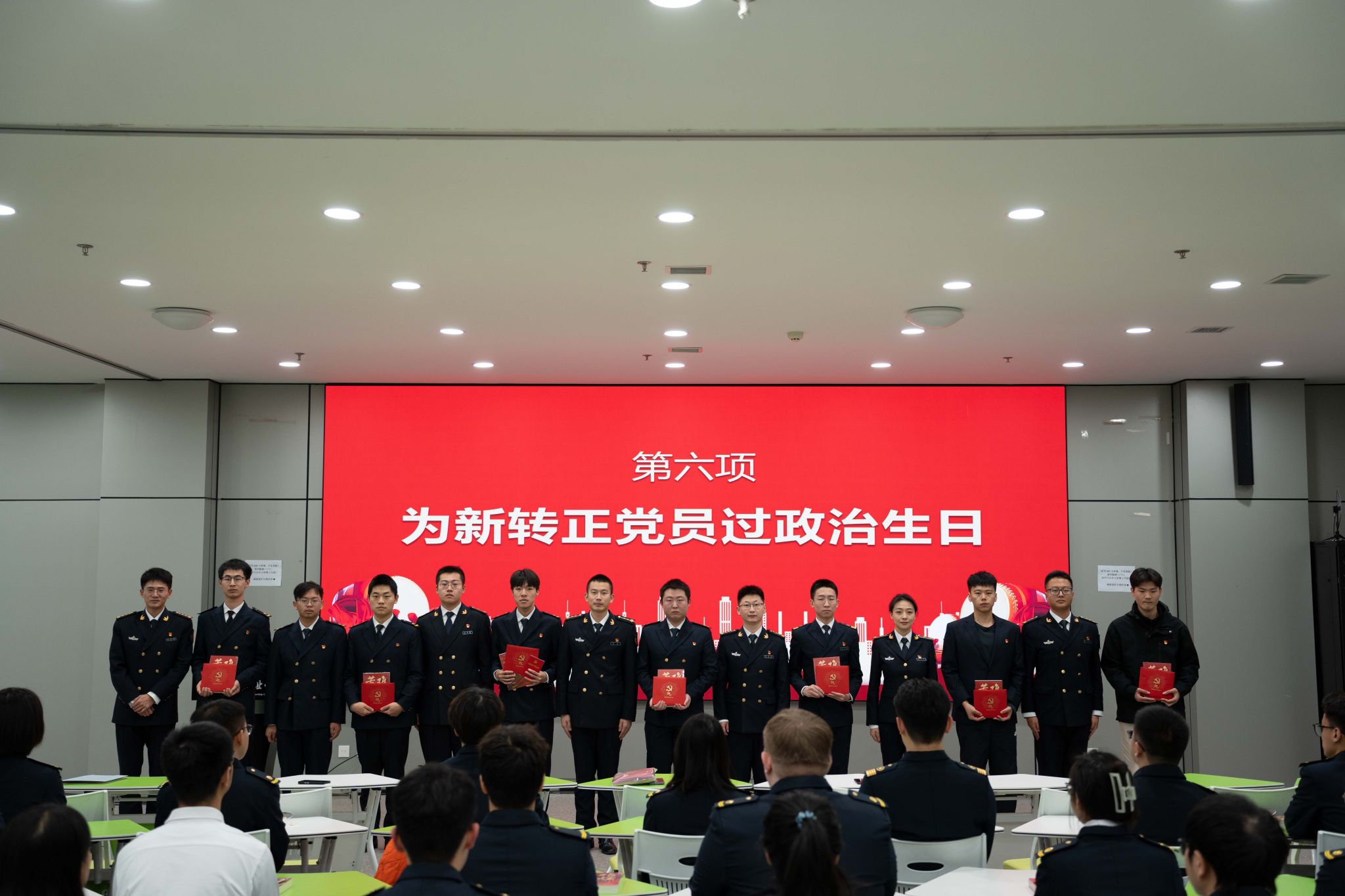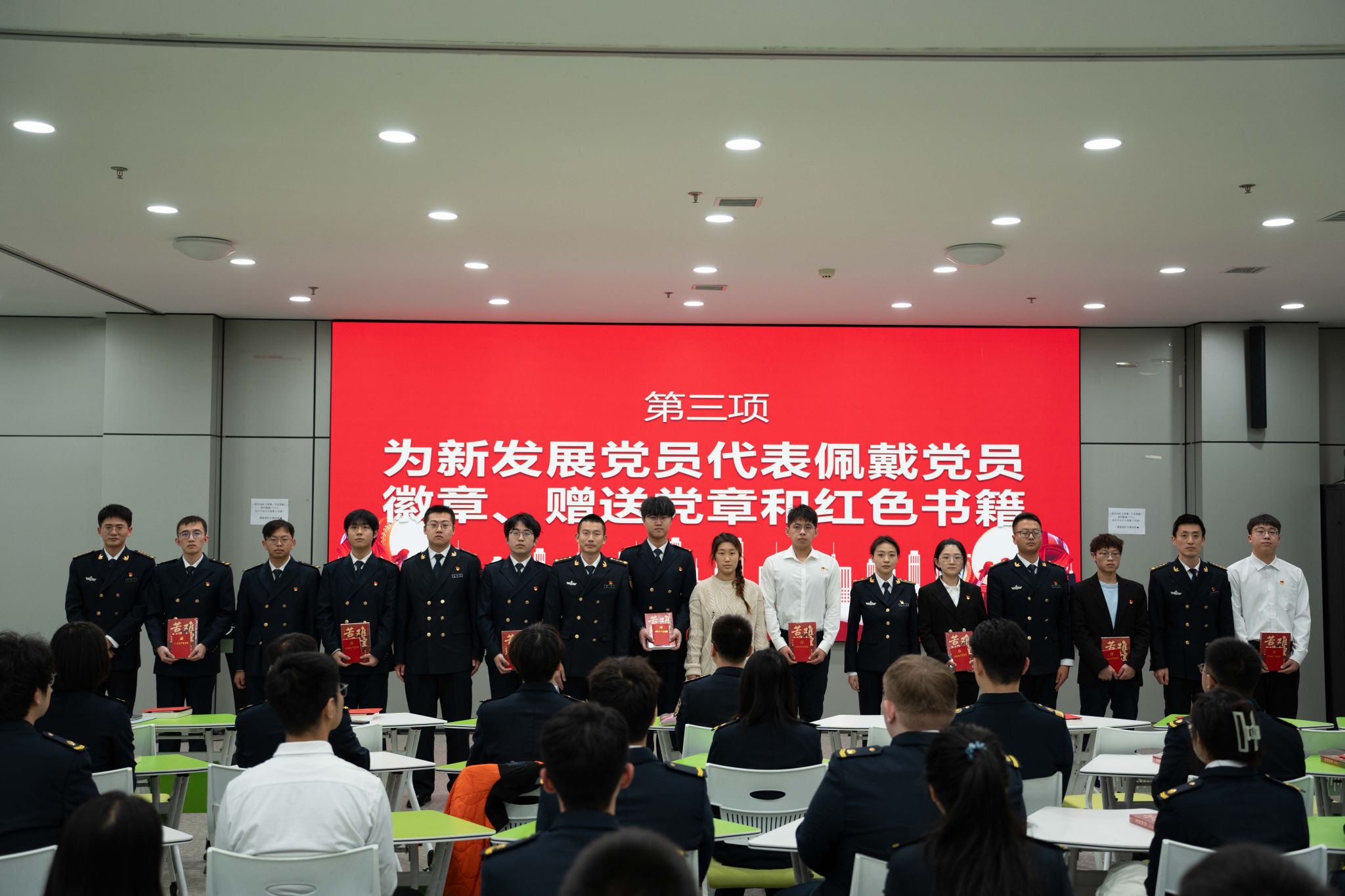 宣誓结束后,各党支部书记为新发展党员佩戴党员徽章,为转正党员过政治生日,赠送政治生日贺卡和红色书籍。最后,全体党员观看党章教育视频,要时刻以党章的标准严格要求自己,做合格共产党员。