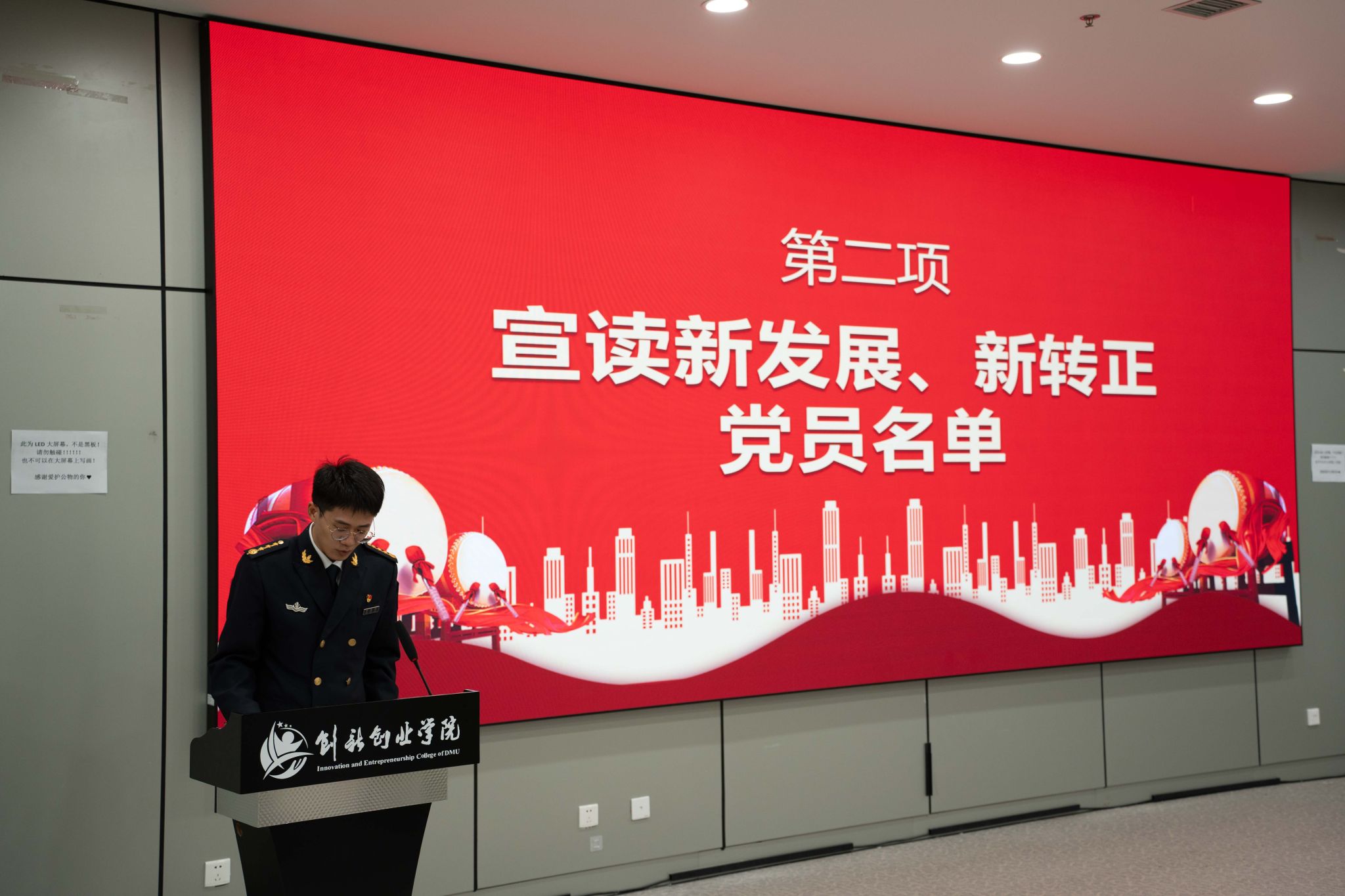 在奏唱国际歌后,船舶电气工程学院党务秘书、测控技术与仪器专业学生党支部书记陈振轩同志宣读了船舶电气工程学院2024年下半年发展、转正党员名单,欢迎新发展党员加入党组织,希望他们继续发扬先锋模范作用,努力提升专业本领。