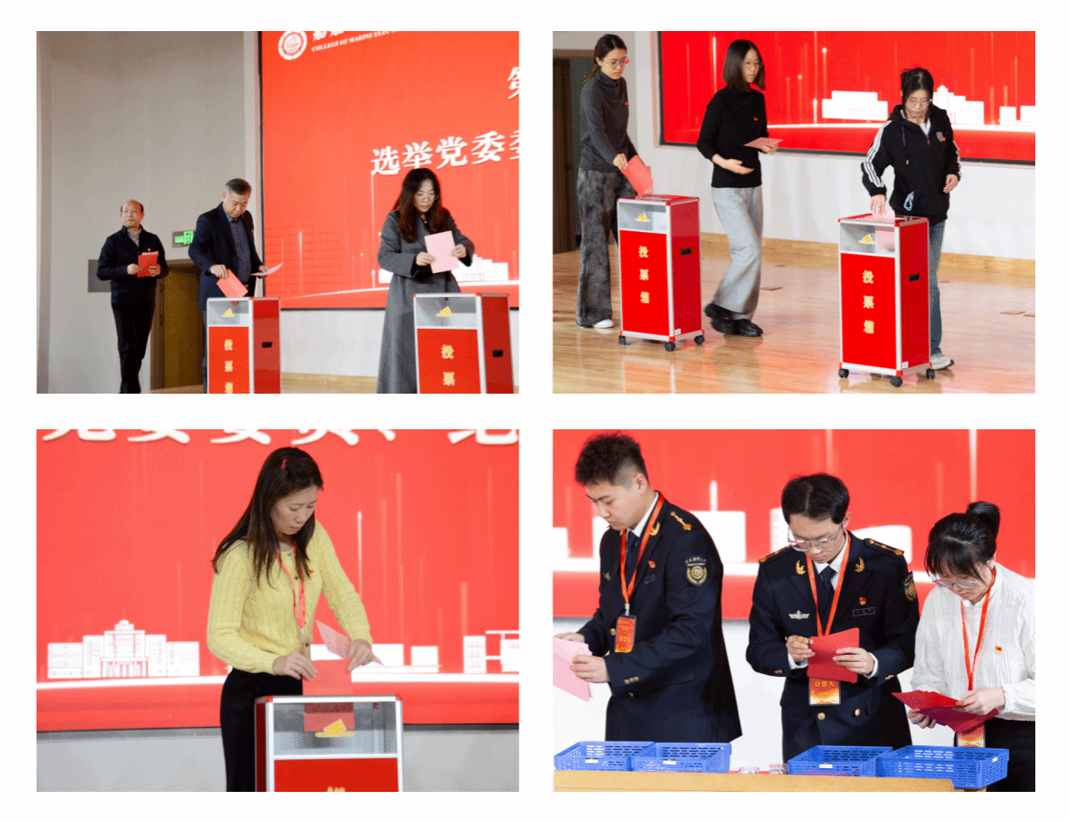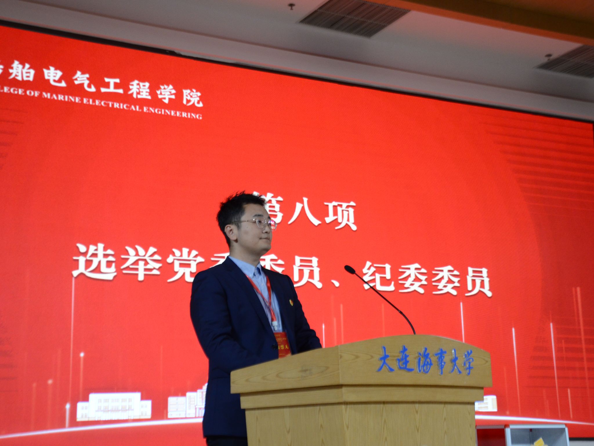 总监票人杨添剀主持选举工作,大会采用无记名投票,差额直接选举的形式,最终选举(按姓氏笔画为序)王超、王振兴、申丽然、白瑾珺、向川、张术佳、周怡然、郝立颖、裴长盛9名同志为中共大连海事大学船舶电气工程学院委员会委员,选举(按姓氏笔划为序)王超、李鹏媛、黄碧珍3名同志为中共大连海事大学船舶电气工程学院纪律检查委员会委员。大会在雄壮的国际歌中圆满落幕。