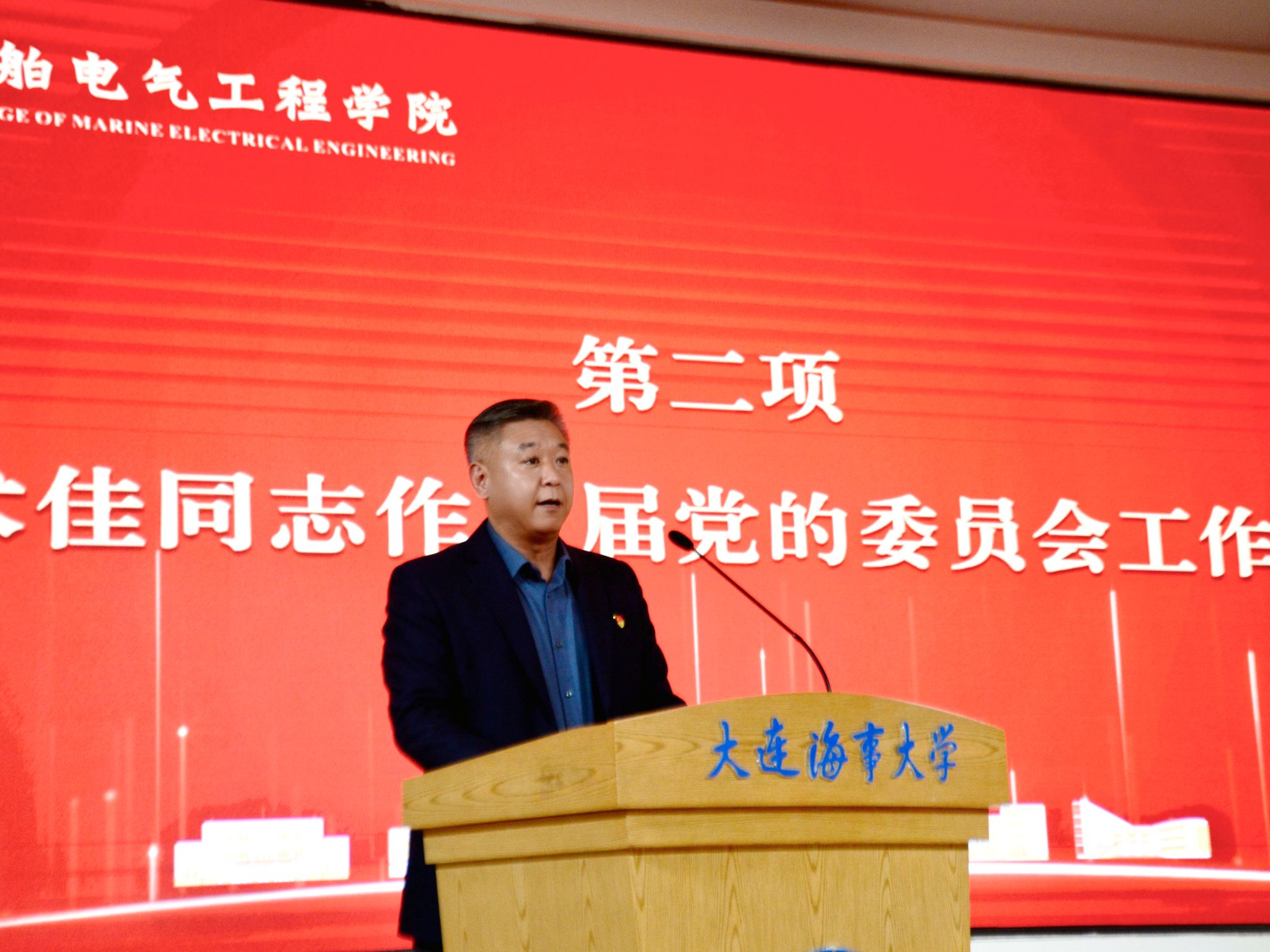 大会在嘹亮的国歌声中拉开帷幕。学院党委书记张术佳作上届党的委员会工作报告,全面总结了上一聘期船舶电气工程学院在党的领导、学科建设、人才队伍、文化育人、科研成果、国际合作等方面的工作情况和取得成绩,明确了新一届党委的发展目标和主要任务。学院党委副书记、副院长、纪委书记王超作上届纪律检查委员会工作报告,从理论学习、政治监督、日常监督、廉政教育、队伍建设等方面全面总结了上届纪委工作,提出了今后工作的思路和方向,并作了学院党费收缴、使用和管理情况的报告。