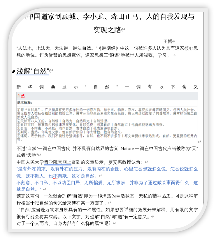 研究中国传统道家思想,发现心理学界的森田正马,武术界的李小龙,文学界的顾城之间的联系,并不是说让我变得更加深沉,或者说发现了做诗人的捷径。而是使我明白,人的生活应当是在自由而忠诚地表达自我,人的一生便是自我发现与自我实现之路。