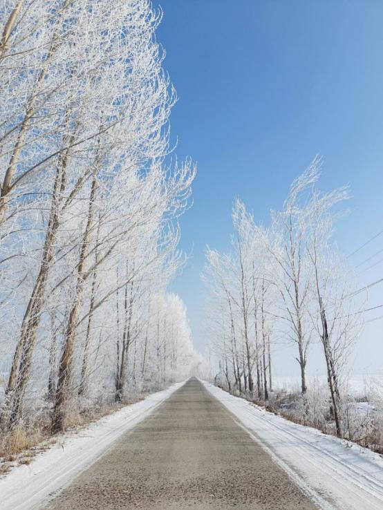 回到了家乡,刚下车的那一刻,冰冷的空气便前仆后继的钻入鼻腔,只有来到东北才能体会到,冷其实也是一种味道。恬静的林间小道已被冰雪覆盖,一望无际的田野已是银装素裹,大道两旁的树上开满了银色的花朵,在银白的枝干上雀跃着,偶尔也会在寒风的吹拂下,抖落下一些纯白的花屑。只有回到东北才能体会到的冰雪之美,已经成为了远行人的思想记忆,蔚蓝色的天空与银白色的冰雪互相应和,以一种协调的美短暂而又永久的停留在东北的冬季。