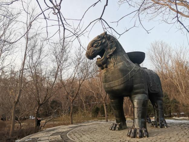 美景总是藏在我们的周围,喧闹的城市中总会藏着那一片绿洲,她有宽阔的空地,周围树木丛生,围绕空地建有许多儿童娱乐设施和居民休闲设施,如跷跷板、秋千、桌椅等,孩童在嬉闹,大人在攀谈。即使寒冬来到木叶凋零,我仍然可以在这里看到悠闲的市民与繁华的街区对映交织。现代化的城市中到处都是高楼大厦,但是园中那屹立的铁狮始终注视着,车马的喧嚣,人们的生活。繁忙、紧张的城市中,公园用一片绿荫与城市喧嚣保持着温柔的距离,缓解着我们的压力,给予人们希望、激情和活力。