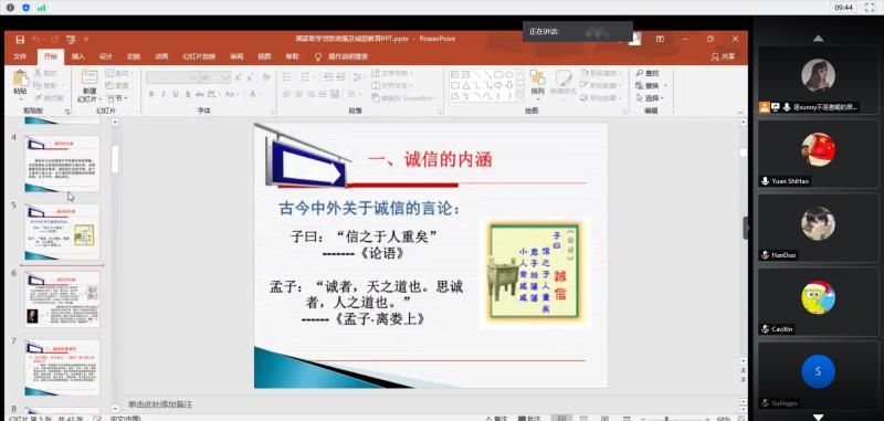 学院各年级分别以专业、班级为单位,通过组织召开“诚信考试伴我行”“诚信考试,人人有责”等主题班会,深入学习大连海事大学学生违纪处分实施细则(学习管理类)、大连海事大学考试工作管理规定、大连海事大学考生守则,宣讲诚实守信事迹,让同学们意识到考试作弊的严重性与可耻性,同时也加强了对学生的诚信教育,引导学生树立了正确的价值观,使同学们深刻理解了诚信立身的道德准则。