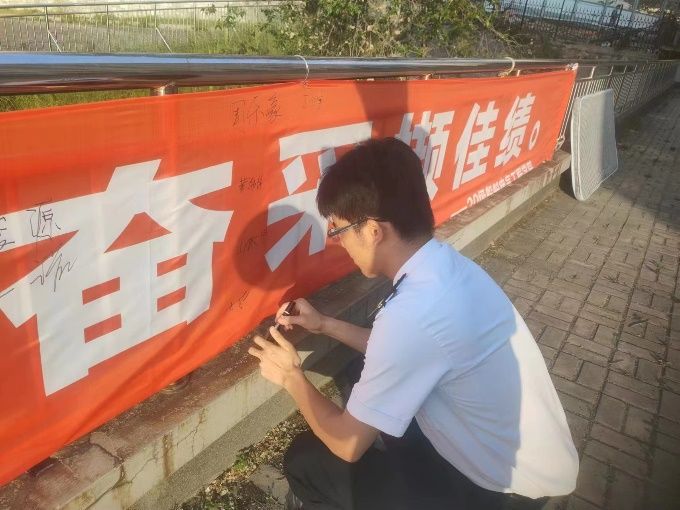 学院于学生寝室公寓附近悬挂诚信考试教育条幅,各中队、班级组织同学在条幅上签名。通过签名,深化诚信考试的内容和意义,进一步增强学生们对诚信备考的重视程度。