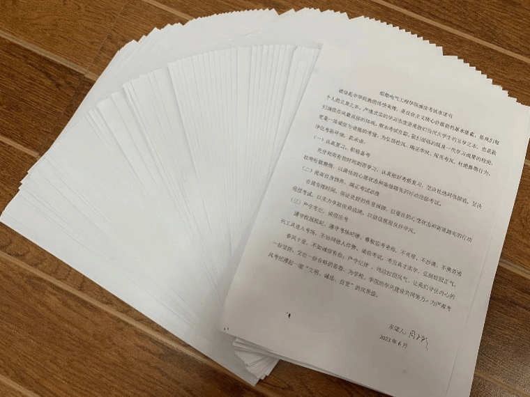 同时,学院组织全体学生开展“诚信考试承诺书”签字活动,增强了同学们的诚信意识和纪律意识,起到了良好的教育效果。