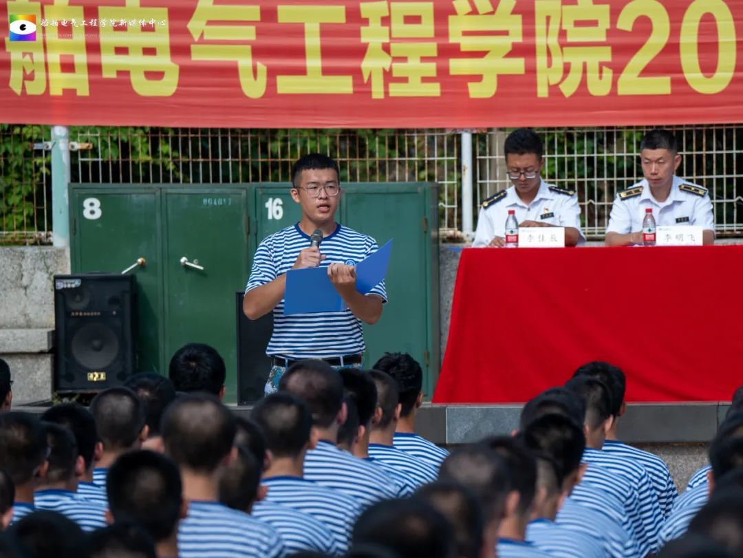 莘莘学子军戎装,不畏军训锐志昂。为激发学生军训热情、塑造健康体魄和健全人格,培养学生艰苦奋斗的优良作风。8月17日,船舶电气工程学院召开2023级新生军训动员大会,学院团委书记黄碧珍、半军事管理大队副大队长丁学军、半军事管理大队副大队长李明飞、2023级新生中队指导员、全体承训教官及2023级新生参加,活动由指导员李佳辰主持。