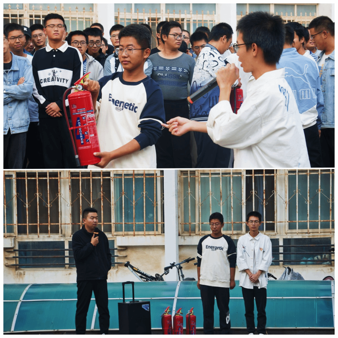 保卫处宛煜棋老师给师生们讲解灭火器使用方法并做示范后,学生代表亲自体会灭火器的使用方式。