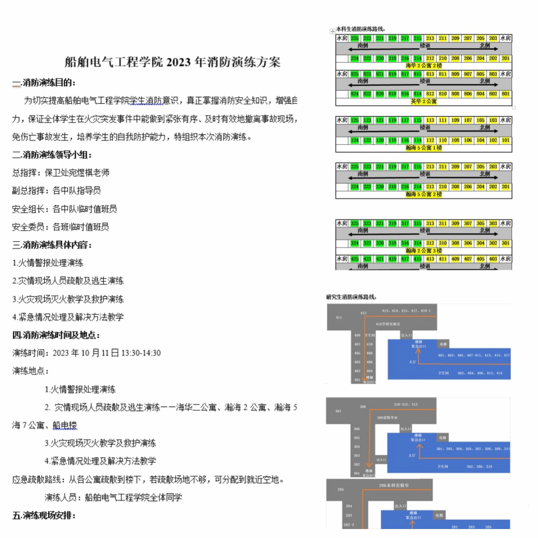 演练前,学院制定了详细的消防演练方案及逃生疏散路线并提前告知全体师生。