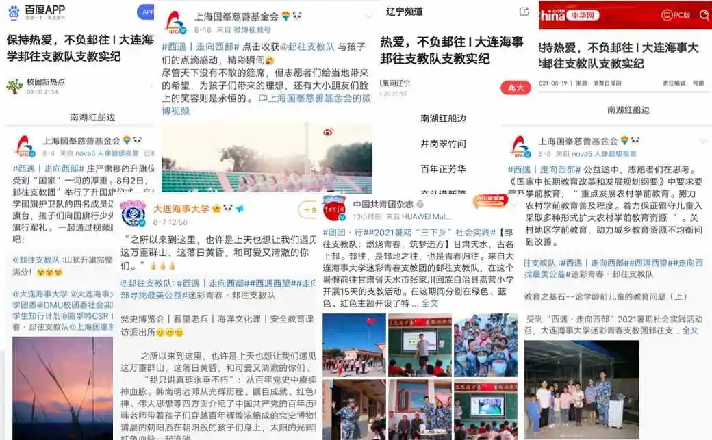 在支教过程中,她们利用微博、抖音、微信公众号、哔哩哔哩等途径分享支教日常,同时她们收到了社会的广泛关注。她们参与活动的经历被中华网、凤凰网辽宁、百度三个平台报道。同时她们活动微博曾被大连海事大学官方微博转发。中国共青团杂志微博也为她们出过单独的推文。她们的微博总浏览量达到33643次,微信公众号总浏览量达到7666次。活动广泛受到关注。