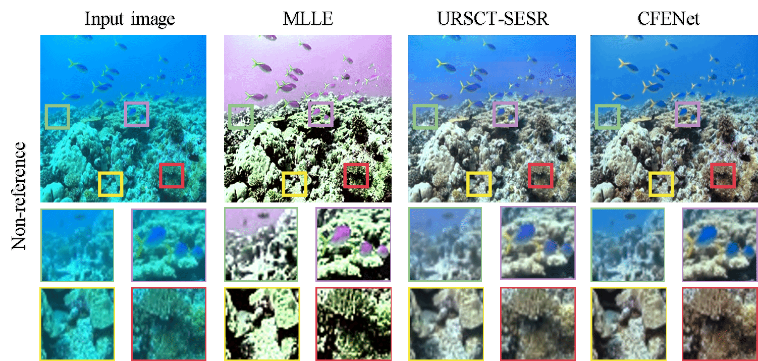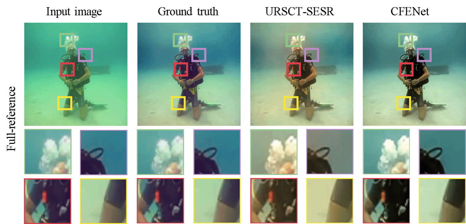 本研究提出的CFENet具备出色的实时性与快速部署能力,为水下视觉感知增强技术领域提供了一种高效、灵活的解决方案。在实际应用中,CFENet能够快速提升水下视觉质量,为水下目标检测、分类、识别等下游视觉任务提供更清晰、更可靠的视觉线索,进一步提升感知系统的整体性能与任务执行效率。此外,CFENet凭借高实时性与轻量化的特点,可便捷集成至水下机器人等智能设备中,实现增强算法的快速上线与在线运行,满足海洋工程中对“实时感知、即采即用”的实际需求。面向海洋资源开发、生态监测、应急救援等重要应用场景,CFENet的高效表现将为水下智能感知系统提供坚实支撑。其出色的工程可落地性与实时处理能力,为智慧海洋等实时响应型应用场景提供高效、可靠的视觉感知支持。